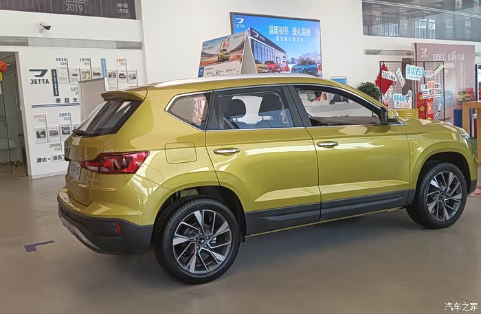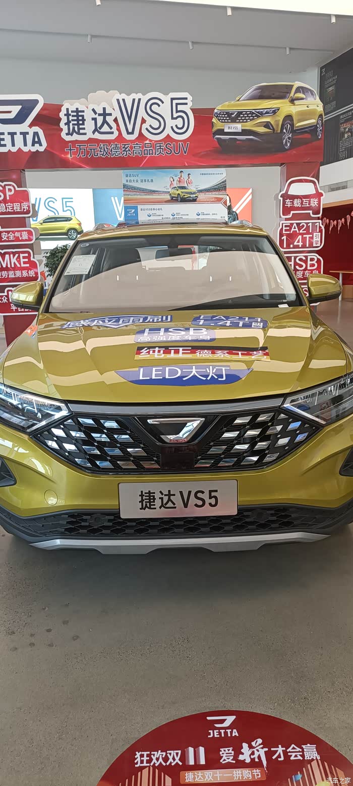 下午茶结束以后,其实时间还比较早。天工作美,两个人还不想回家,朋友说,年底了,打算再买一台车,因为家里目前使用的是轿车,所以考虑一台SUV。我也不是很懂车的,就现学现卖,打开手机APP查,哈哈哈,居然就让我看到了一台金黄的SUV,捷达VS5,朋友觉得也还不错,于是我们就决定去4S店看看。