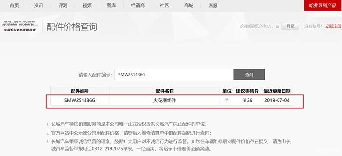 长城官网查到火花塞价格,确实是39元,听说之前20块来着,看日期是最近涨价的!