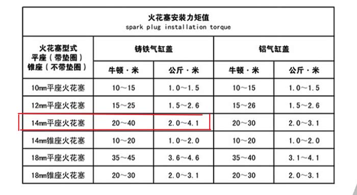 火炬官网查到火花塞安装力矩!20-40牛米