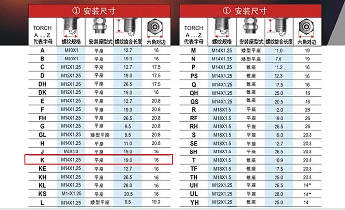 原厂火花塞尺寸规格