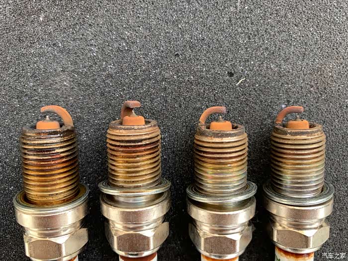 新买的火花塞和出厂时原车一模一样!46000公里用下来,大眼看上去除了脏了,没啥变化。