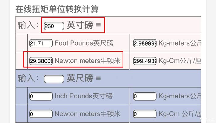 力矩单位换算,30牛米大概260磅英寸