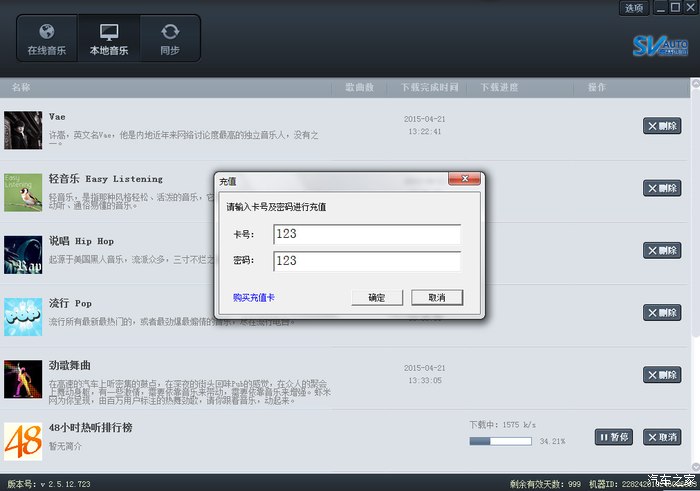 等待认证请求,然后进入德赛西威音乐E栈,点击选项,充值