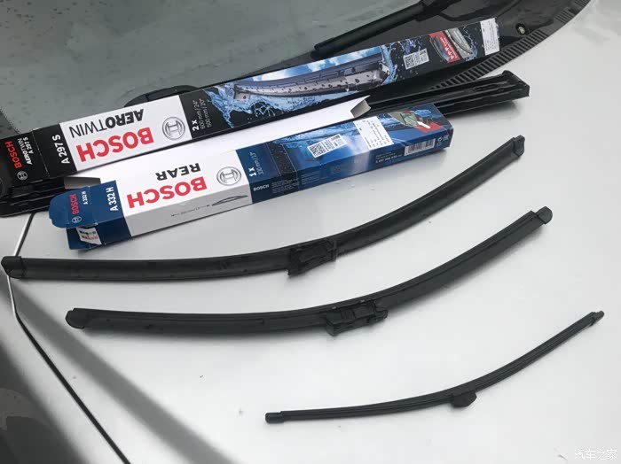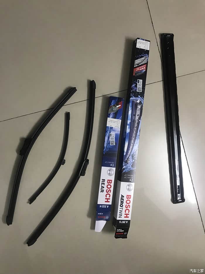 车子原车前后三根雨刮片整整用了六年时间,差不多快退休了,寿命真是长。在博世旗舰店拍了全套三根雨刮,自己动手更换。