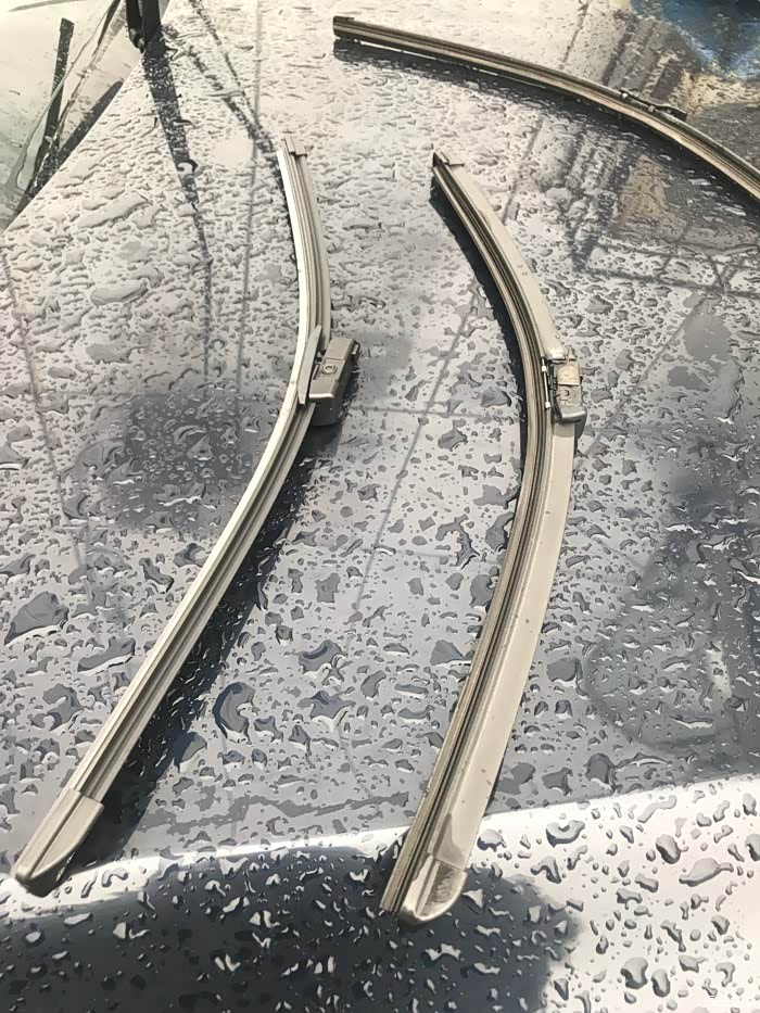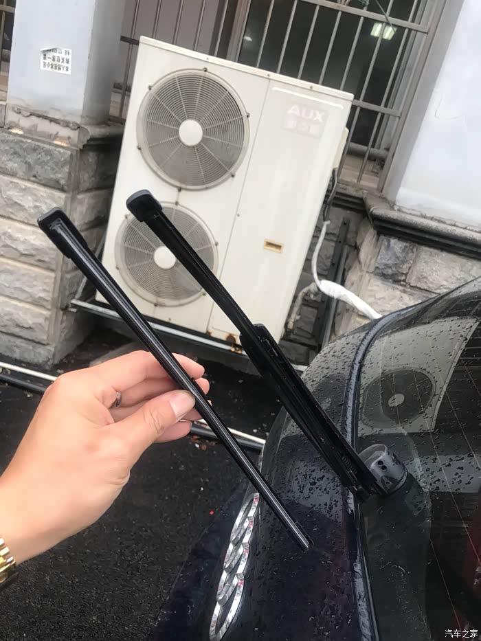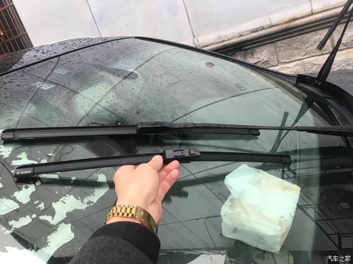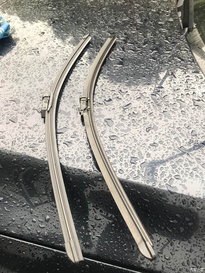 主驾驶侧的旧雨刮片取下了,前旧对比照。