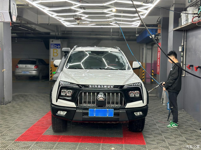 我选的是白色,一点也不俗气,开在路上十分亮眼。前脸进气网周边加了一圈黑色的边框,让整个车头看起来更有气势,辨识度一下子就提高了。铝合金轮毂也很漂亮,看看我洗车的时候拍的,是不是还不错。