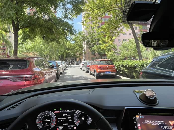 二是车辆尺寸确实大,车又长又宽,特别是将近2米1的车宽需要一定时间适应,不太好停车。在北京一些停车位比较紧张的小区,对车身距离把控要求比较高,侧方停车对于新手司机简直是噩梦,好在自带的360度倒车会有影像声音提示,直接看屏幕侧方停车就行(吐槽一下影像的喇叭声音每次还有很大距离就会很响,每次刺耳的声音很烦还得手动关掉),不过这个系统也有个特别重要的优点,好几次在小区倒车的时候,突然有电动车从车后面飞驰而过,系统会自动刹车,避免了好几次可能发生的剐蹭。