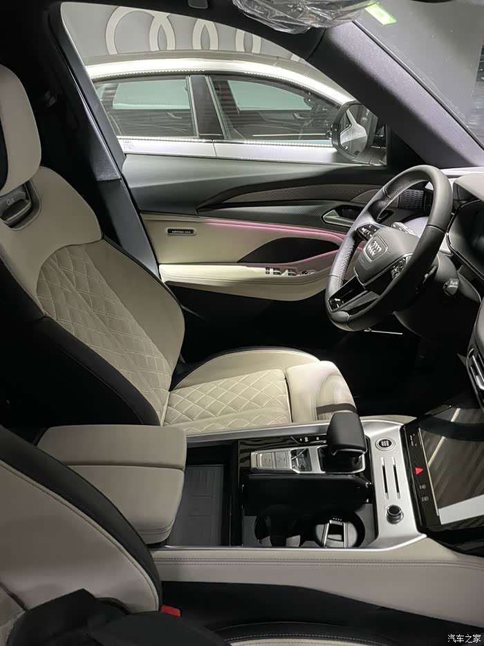 正当准备离开展厅,考虑去看其他牌子的SUV时,突然被旁边放置的一辆庞然大物cue到(其实第一眼觉得Q6屁股挺丑的...又大又宽),不过想着既然来都来了,就逛逛看看,绕车一圈,结果被Q6霸气的前脸种草了(当时展厅里放的是Q6飞骑6座版),心想前面看着还行,进驾驶舱看看,一开门还是被赛车椅造型所吸引,感觉SUV能做的真么时尚,实属少见(驾驶舱内超帅的urus、DBX敢看不敢买),不过当时展厅里的展车轮毂并不好看,给笔者的感觉就是很普通的大众轮毂,甚至还不如最新途昂的轮毂时尚...还好销售及时介绍了有其他类别的轮毂可以替换,在大屏电脑上看了看,果断被21寸的RS碳黑飓风轮毂所吸引,再加上巨大的储物空间和坐在驾驶室位上熟悉的感觉,就决定买他了。