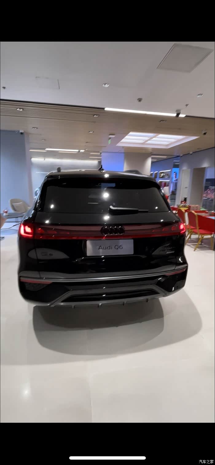 1、外观:实车更好看。有一说一,在移动互联网时代,Q6的外观因为不是很上镜,其实还蛮吃亏的。笔者在展厅看完实车后,回家上网也看了很多测评视频,能把Q6真实外观原貌质感反映出来很难(可能是镜头语言削减力的缘故)。如果看照片和视频还能接受Q6外观的话,真心建议去实地看一看,感受一下,实车确实比照片和视频好看很多。特别是屁股那块,应该是设计师视觉设计的效果,当你近看这个车的屁股时,会觉得很大很宽,但是远看又会觉得这个车屁股很小,整体给人一种收窄的感觉。(原谅笔者用手机拍出来的样子也很宽)。