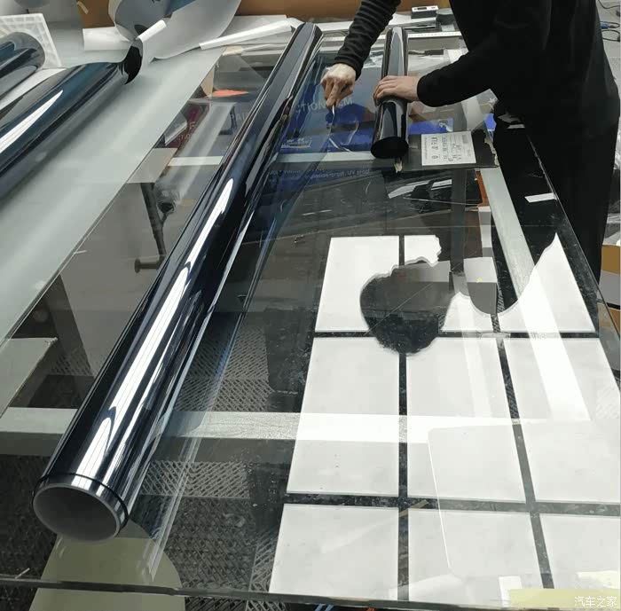 贴车窗,原来是靠清洁水来贴合的,刮平是关键!