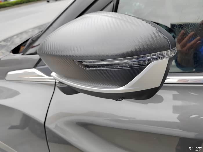 左后视镜,还带有黄色转向带灯的,碳纤装饰好看!