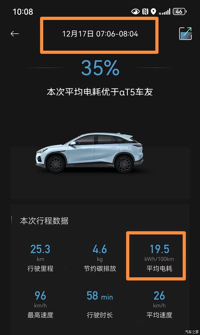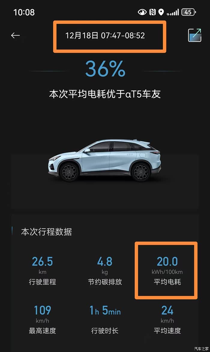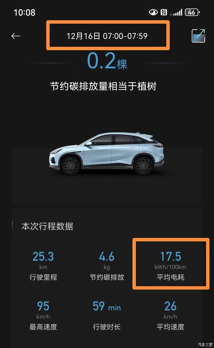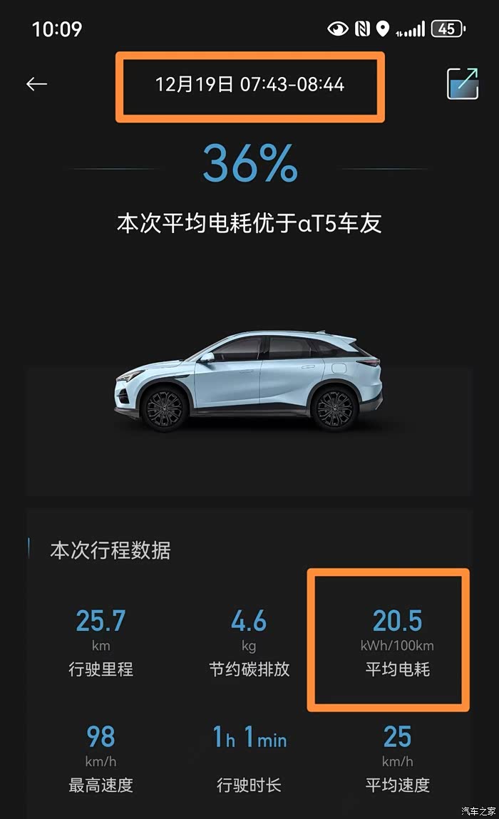 12月17日:平均电耗19.5Kwh/100KM,满电跑333km