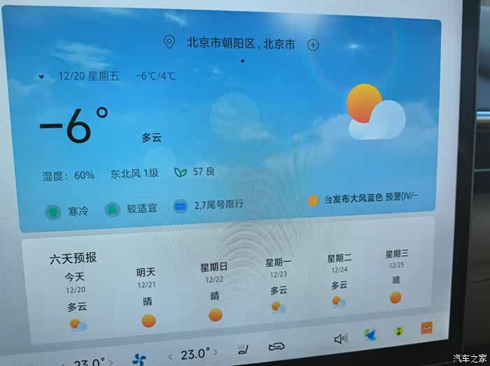 12月20日,天气:-6度,:空调:23度1档风;驾驶模式:舒适