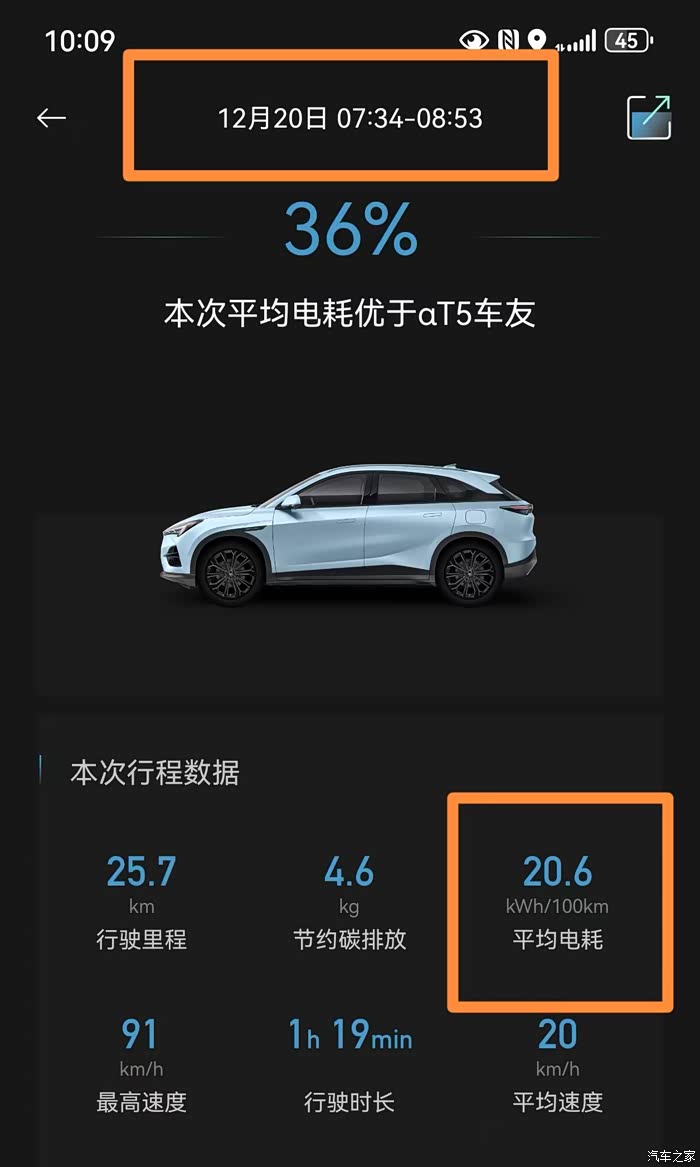 12月20日:平均电耗20.6Kwh/100KM,满电跑315km