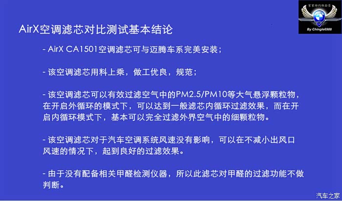 【6988第五弹】当经典搭载科技-B6迈腾实测AirX空调滤芯测试记录