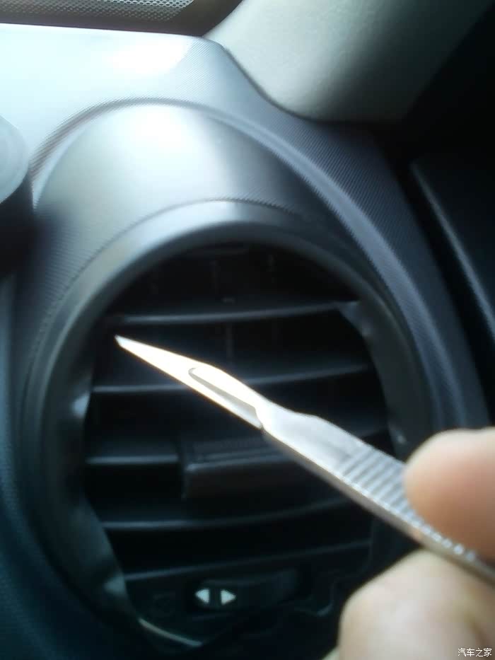 俺的哈5到家近半年了,车,我还是很喜欢的,这里给设计师提些意见,16经典版的仪表台左右两侧出风口,为圆形度铬亮圈,看这好看,但是开车时,看左右后视镜里都有个亮圈,对行车安全有隐患。我将就了半年实在是忍受不了了,今天终于想出办法,把亮圈问题解决了!用电工黑绝缘胶带贴上。