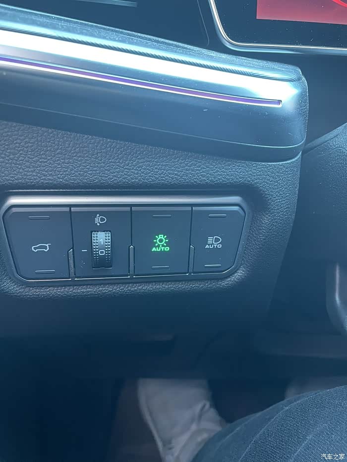 在方向盘的左下角有这样四个按钮,第一个是后备箱开启关闭,第二个是灯光调节高度,第三个是远近光自动切换,第四个是自动大灯,神兽真是非常帖心把这么多实用的功能都集中在这里,美观又方便。