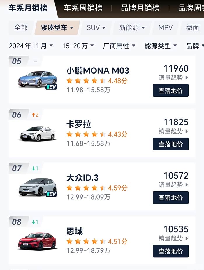 小鹏MONA NO3在2024年里,可以说是车汽中的一匹黑马,从2024年8月份上市,到11月,销量都可观。