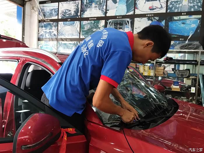 中控膜贴好了,据说是防蓝光,可是比较硬,师傅弄了半天边边还是贴不牢,师傅自己怪不好意思的,不过师傅手艺还好