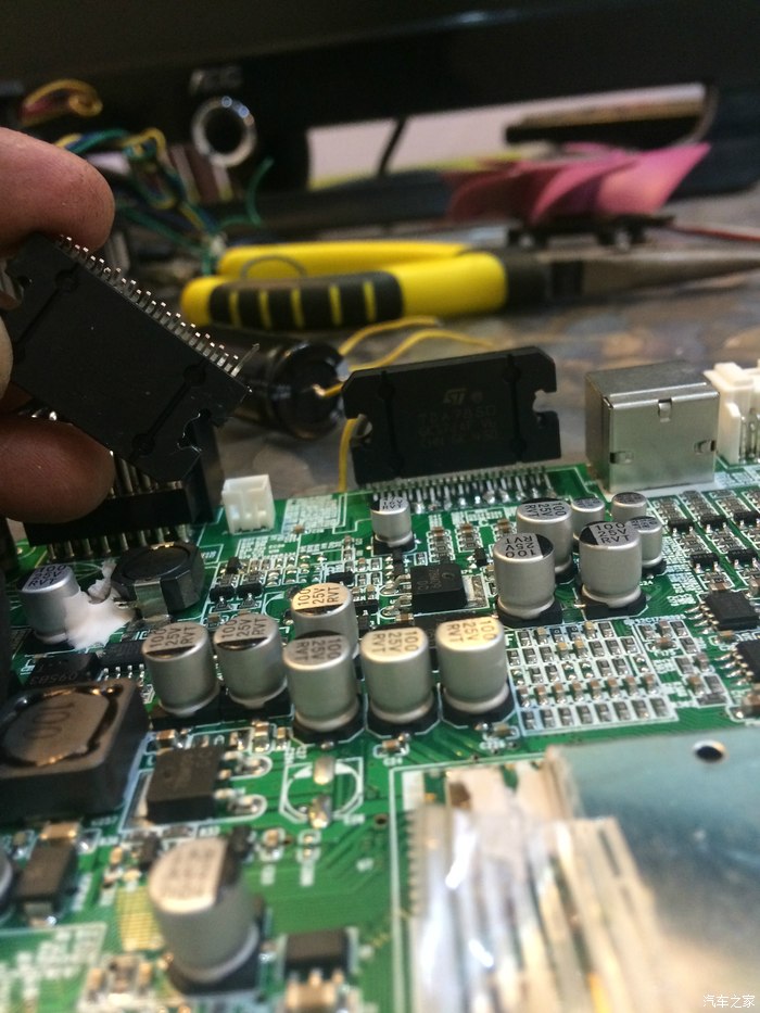 我拆下机头找到里面的集成功放管,型号为:TDA7387!尼玛!好差劲!网络上好多人说了TDA7850!貌似强大的很!