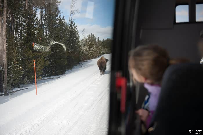和我们同车的,还有上海的一家人,因为在国外工作一年,春节就带上娃一起到美国来了。他们就是提前一天打电话给黄石西的酒店,然后酒店给的雪地车公司电话,直接预订的。他们的价格是320美元,一个是比我们少了30美元的门票钱,另一个应该就是国内旅游公司的利润了。