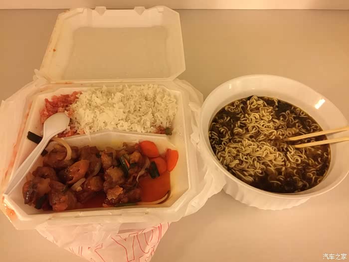 一份炒饭,比咕咾肉都贵。当时先让娃吃饱,我们打包回来。说实话,在美国真的会把咕咾肉吃腻的……,还好我还有方便面。但这了的炒饭,已经比之前吃的炒饭都好吃了。