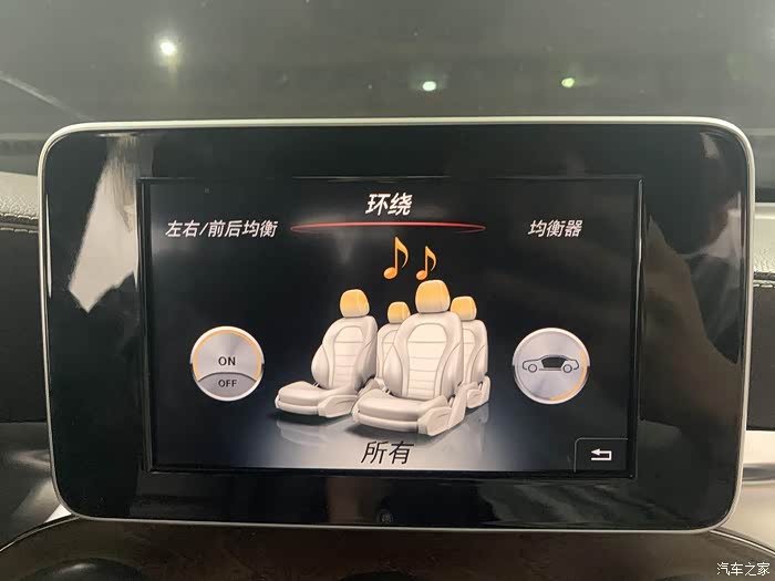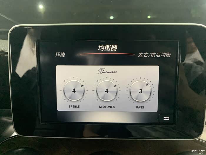 通过程序写入可在车内屏幕中操作选择柏林之声环绕系统的各项设置,根据个人喜好,调整低音、中音、高音的参数,也可打开或关闭环绕系统或调整音响效果参数。
