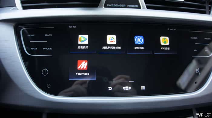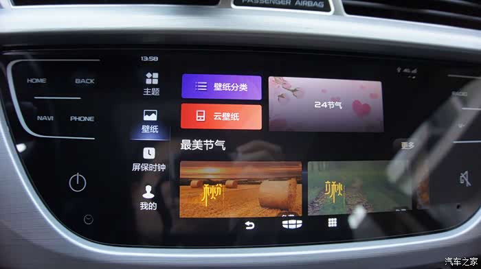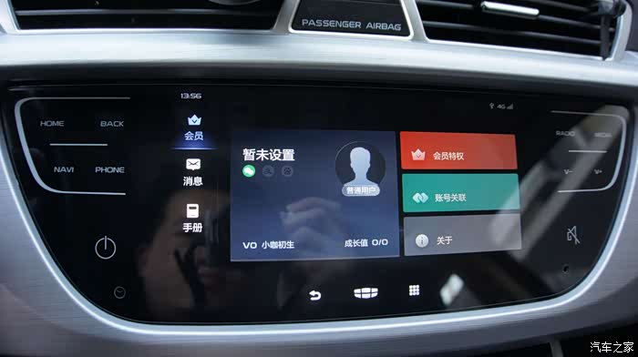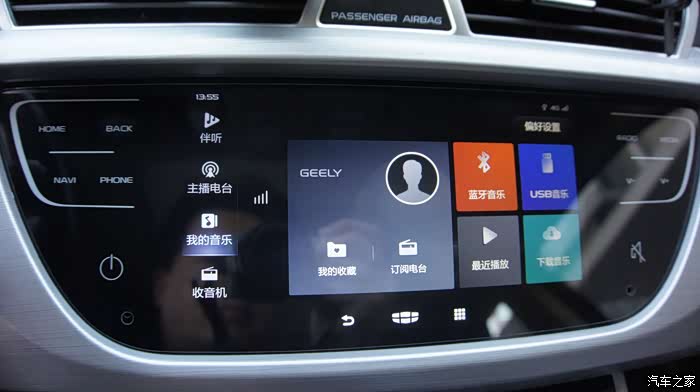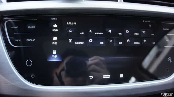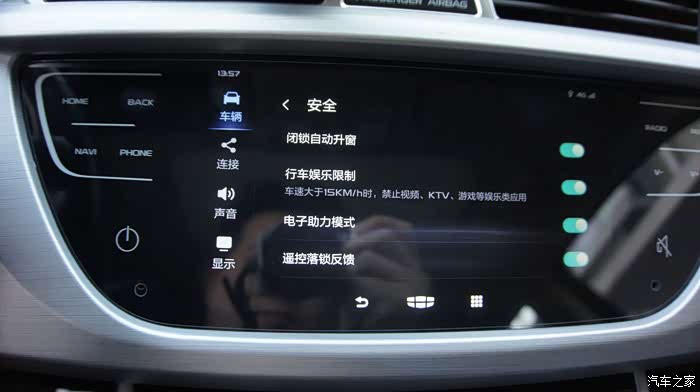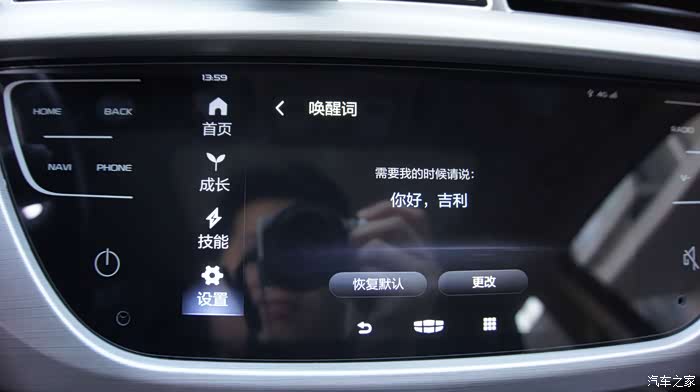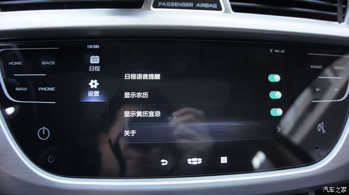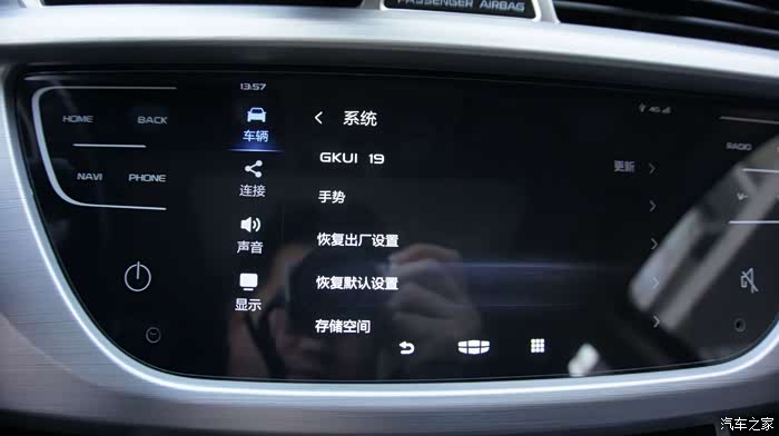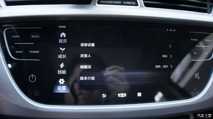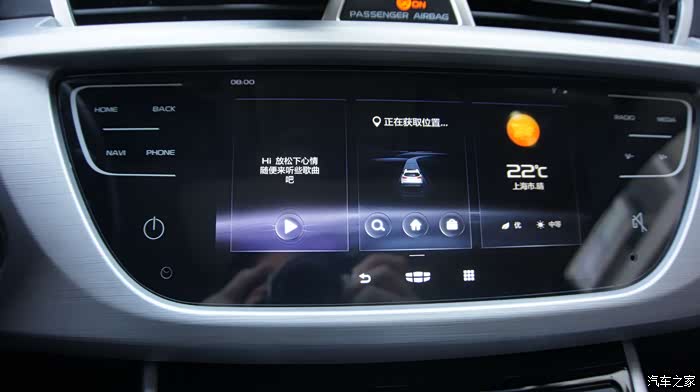 新车机外观上最大的变化是由物理按键变成了全触摸屏,这个怎么说呢,有好有坏,好的是质感有提升,看上去更高级,有种流行的“全面屏”的感觉,缺点么反馈没有实体键来的明显,开车时操作不看屏幕的时候不知道有没有点中,这也是触摸屏的通病,开车的时候最好别按,还是通过智能语音来操作吧^^,也许这才是吉利的本意呢~~~