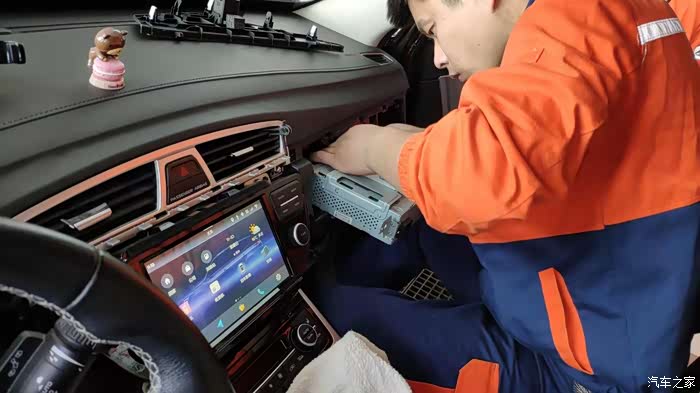 原车机其实是分体式的,除了中控屏幕外还有一个控制盒在副驾驶扶手箱的上面,挺大个铁盒子,这次换新就用不着它了,新车机做到了和屏幕一体,即升级了硬件又缩小了占用空间