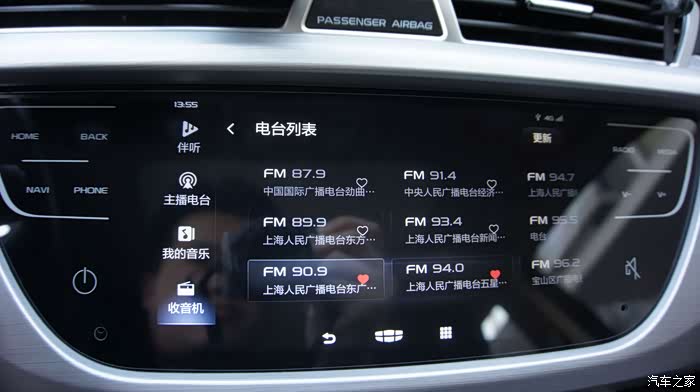 在收音机界面中,FM/AM波段可自由切换,轻松选择自己喜欢的各种电台频道