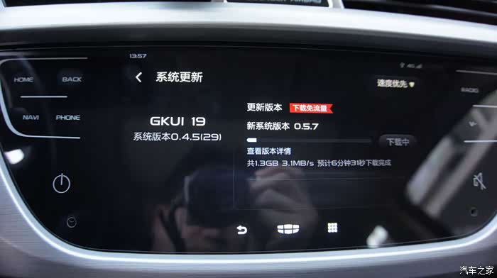下载更新包有体验优先和速度优先两种模式,体验优先就是更新会在后台下载,不影响车机当前打开的应用网络需求,速度模式当然就是指的火力全开全速下载啦