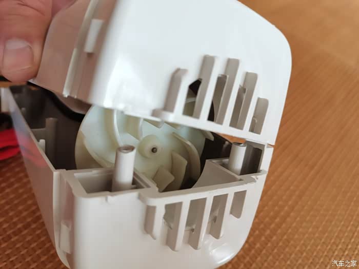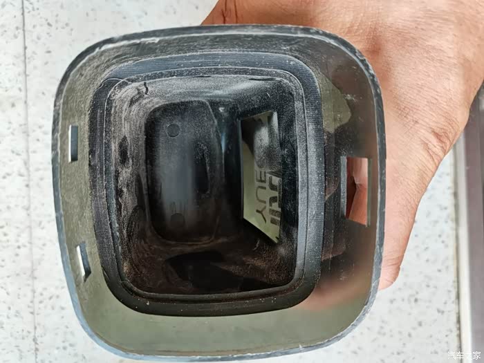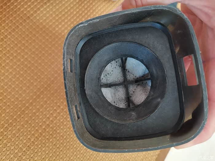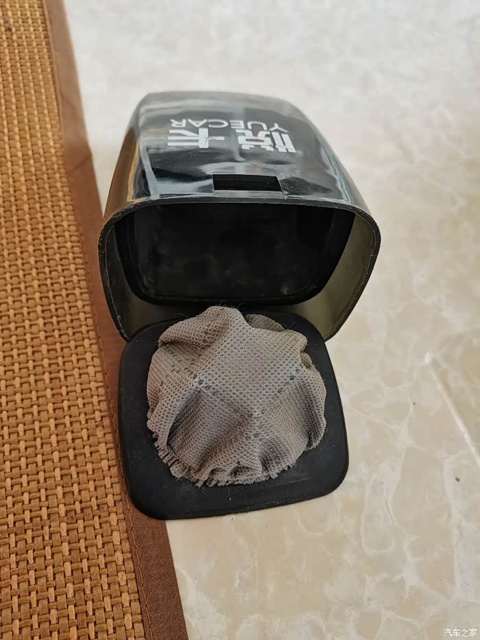打开过滤网,不像家里用的带有滤纸的吸尘器,毕竟就是简单的吸吸车里的灰尘