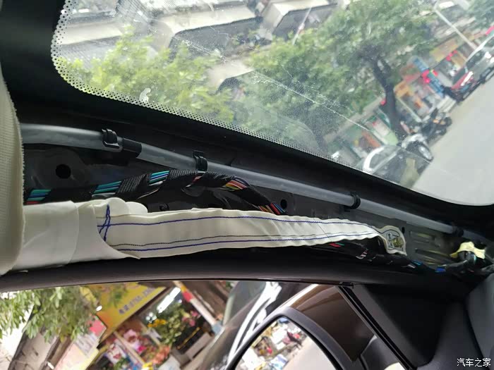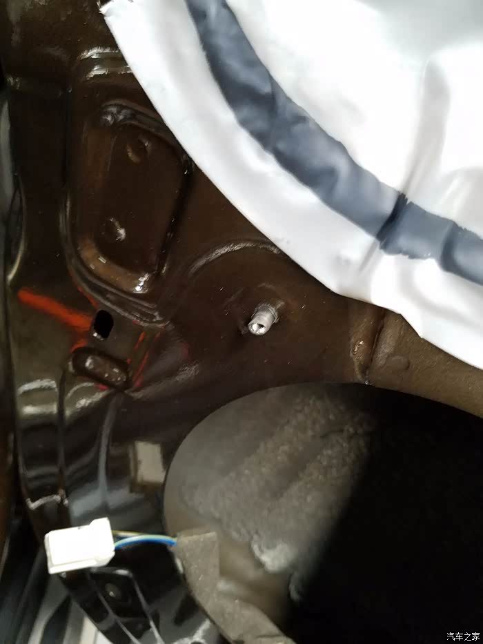 左侧A柱拆解后的效果(后补,非4S内拍),左侧A柱比右侧多了一扎线束