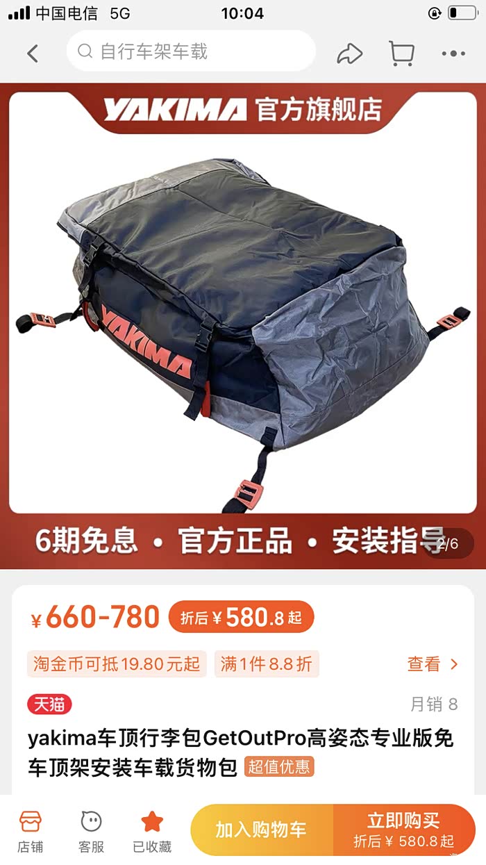 之前配的拓乐820车顶行李架,装载的时候需要网兜绳索固定,想配一个车顶包,TB入手Yakima车顶重载包,尺寸与820很配,使用体验也不错,颜值在线,风格适合傲虎lv xing che推荐给车友们