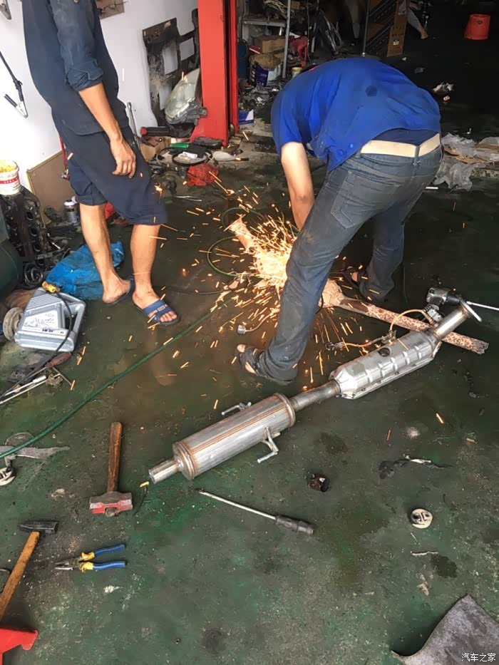 太长时间了,螺母都生锈了,氧传感器只能靠工具锯开了