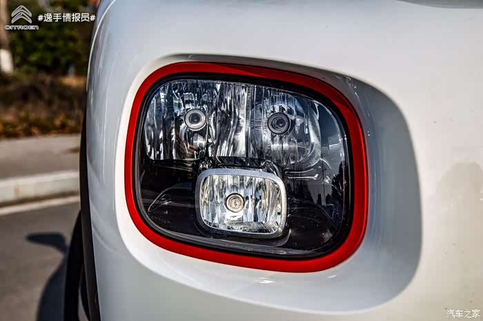 其实眯眯眼的部分只是转向灯和日行灯。真正的远近光灯组在下面Q萌的小酒窝的这个位置。灯圈还用鲜亮的颜色装饰,大胆!!!!