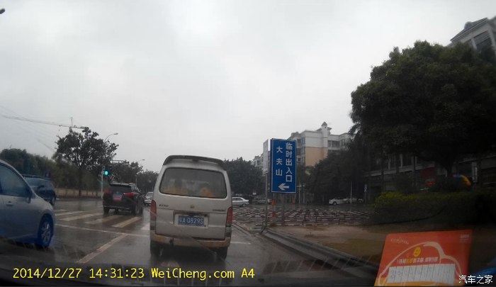 这个是12.27号那天装上行车记录仪后视频的截图,当天天气为阴雨绵绵,时而大雨,时而小雨天气。