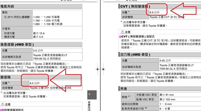 上图为说明书标明的变速箱油容量,供大家参考