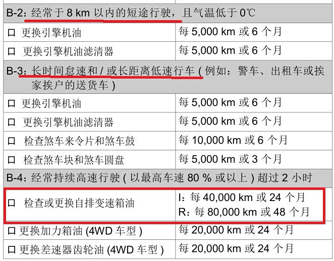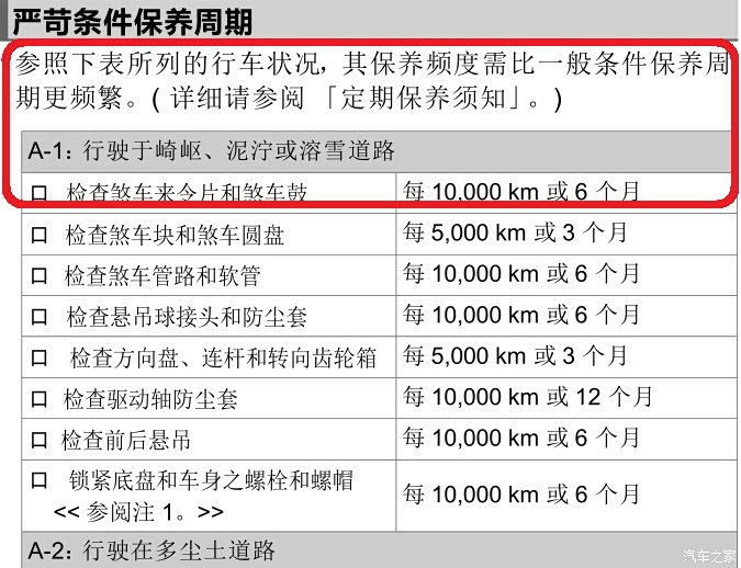 很多车友最容易忽视的内容,保养周期表后面内容 ---- 在严苛条件下保养周期