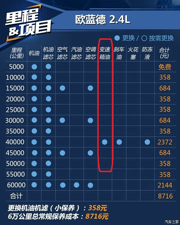 其实使用和奇骏相同型号变速箱的欧蓝德,明确的标注出:变速箱油更换间隔!