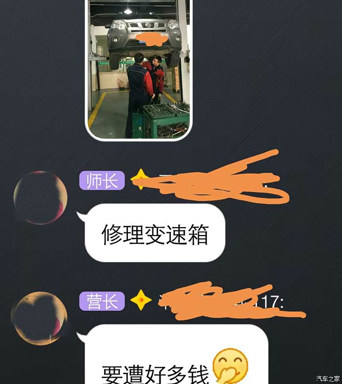 这不前几天,一奇骏车友也是听信 终身免维护大法 的忽悠,中枪了---- 车辆已过质保期,变速箱出现严重故障,维修费用肉疼呀!