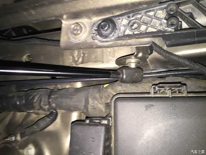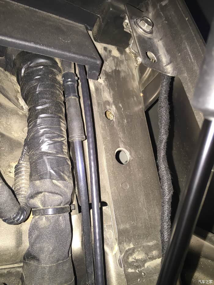 线是从前机舱驾驶侧电瓶边上走的,用束线器固定到侧面的管子上了。