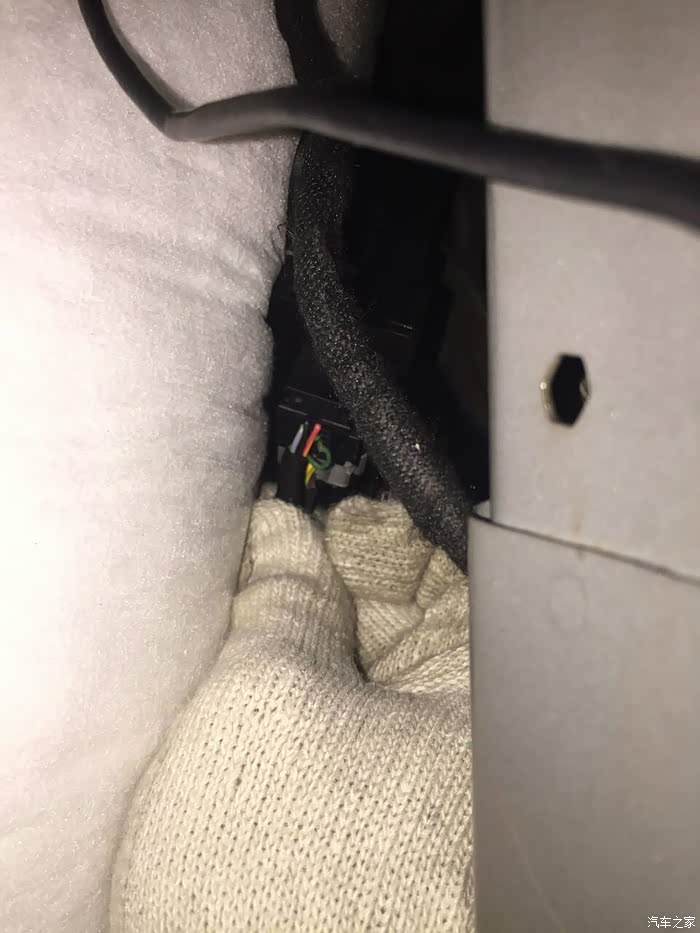 然后从雨刷下面的一个口穿到驾驶位下面的一个线束接口上。
