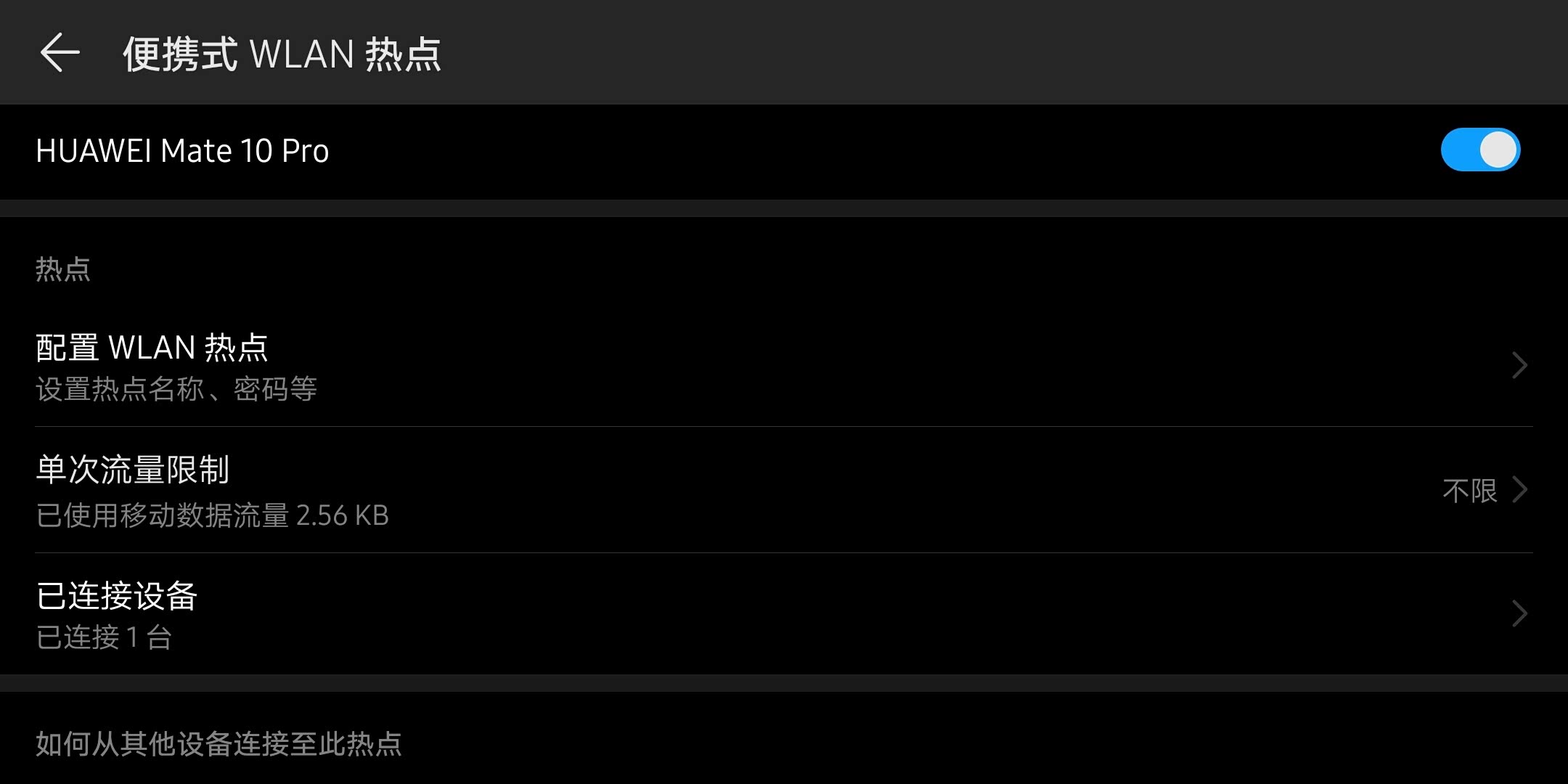 2、手机WLAN热点,俗称WIFI热点。以下我以华为Mate10 pro为例进行解说。此方法只要设置一次,以后车机没流量就会自动连接。我的手机以热点唯一不爽的,就是接听电话,网络会断掉。目前有双4G双模手机,可以规避这个问题。