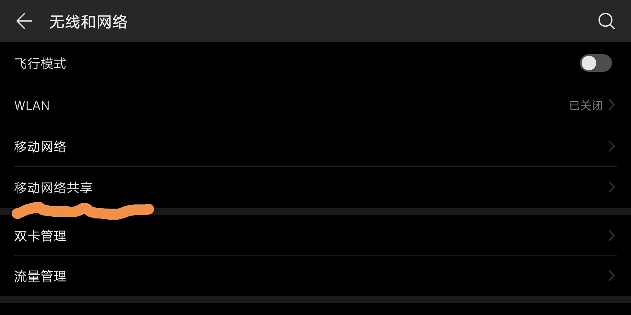设置进入找到无线和网络进入,找到如图移动网络共享,进入。
