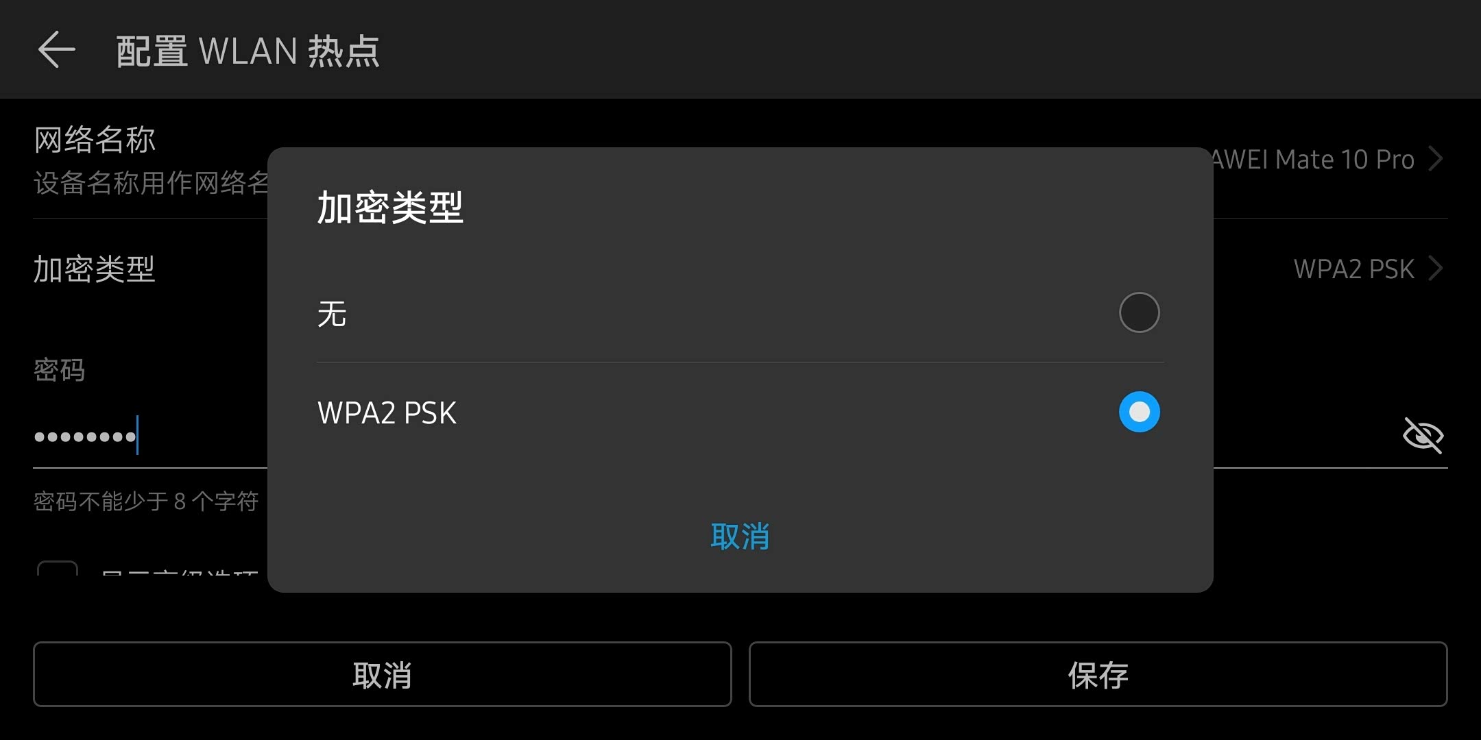 我的热点HUAWEI Mate 10…已在列表中,点击选择,需要输入刚刚你设置的密码,确定。