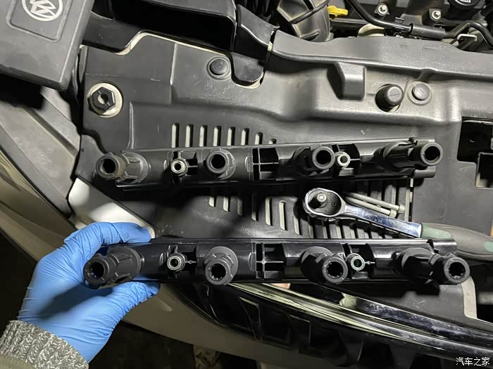 点火线圈没有固定的寿命,难以判断好坏,运气不好的十万公里内就坏了,运气好的开25万以上都没事。原车的点火线圈在沉头孔及其边上的树脂有轻微开裂(可能是高温老化),一年前已经换过一套弹簧、电阻、胶套,但没有明显改善,所以此次考虑预防性整体换件,并观察换后是否有性能上的提升。