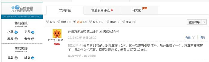 导航是2015.12.12号购买的,用了两三个月就出现定位无法定位了,系统还经常黑屏,发动汽车导航开不起来,后来和客服联系更好了一台新的导航,新导航定位问题解决了,但是还出现黑屏现象,后来客服说可能是