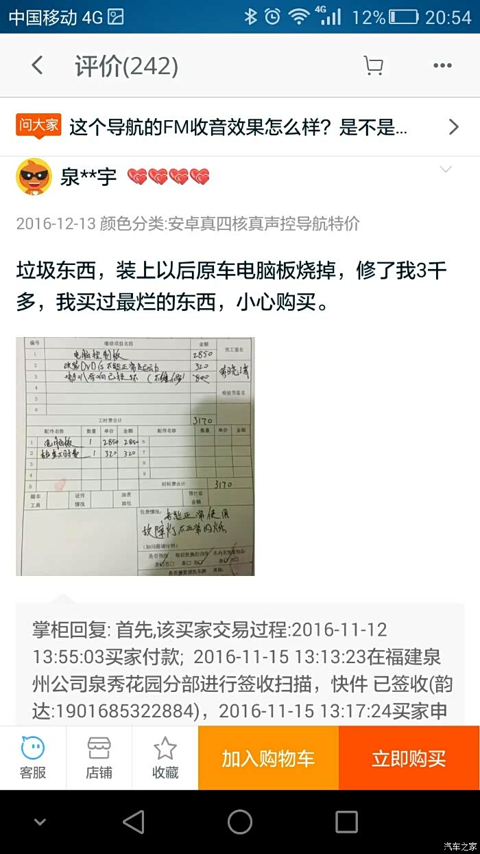 大家别图便宜买这个云声导航,质量太差,新导航用了两个月老是出现黑屏,导航搜索不到卫星,后换导航主机,还是黑屏,导航搜到卫星了,后来客服换导航主机,还是黑屏,导航搜到卫星了,云声导航的技术说可能是线束盒问题,换了线束盒,还是出现黑屏,又出现导航搜索不到卫星了,复位也不行。要求退货,卖家不同意,说可能是线束盒问题,换了线束盒,还是出现黑屏,客服还说这个机子从来没出现这问题,后来推荐升级系统,升级后才没有黑屏,可是又过了两三月之后,又出现导航搜索不到卫星了,复位也不行。要求退货,卖家不同意,说只能寄回去维修,而且费用自理,产品没用几个月频频出问题。就是这个垃圾云声导航。旺旺号:晨露与花