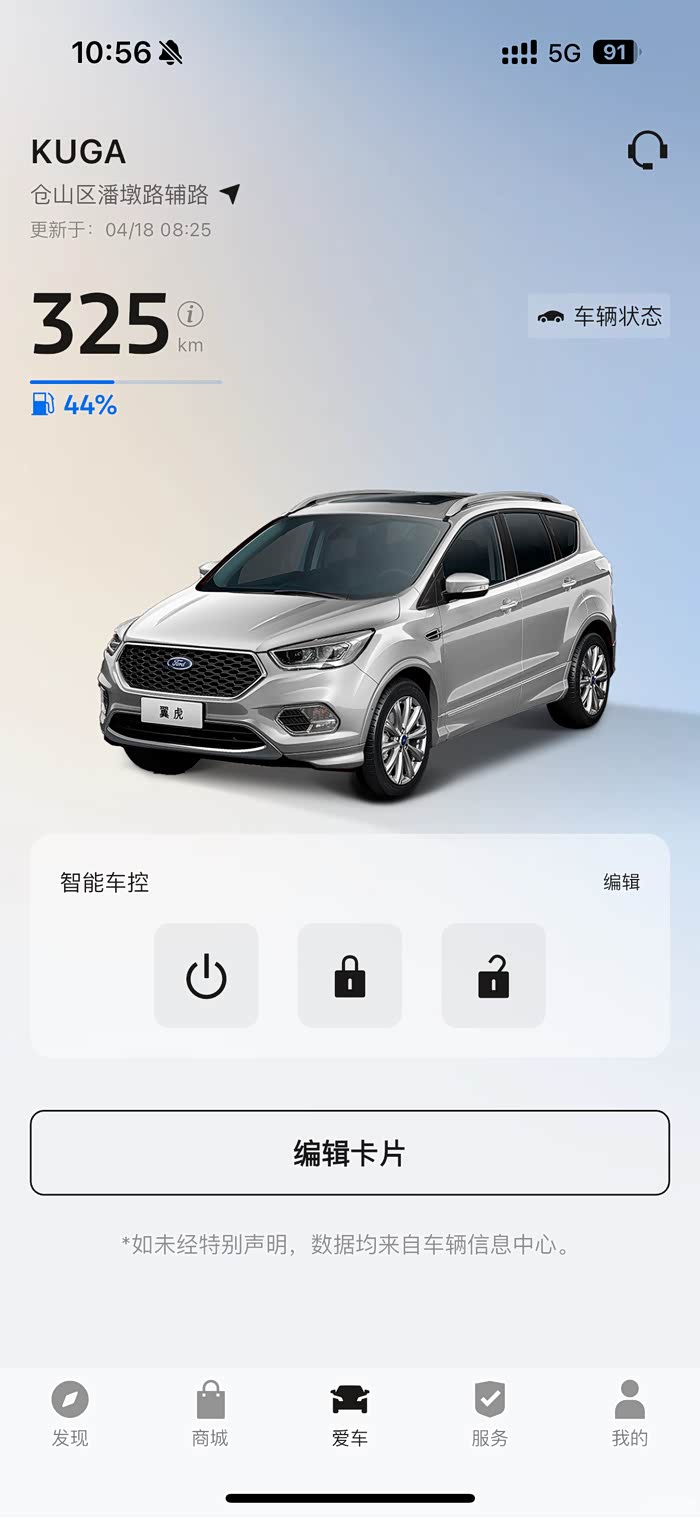 翼虎的福特派功能比较少,不过能远程启动,解锁,锁车,定位也够用了,夏天可以提前启动车辆,自动打开空调。最近一次更新完UI界面好看多了,就是定位出bug,不知道什么时候能修复